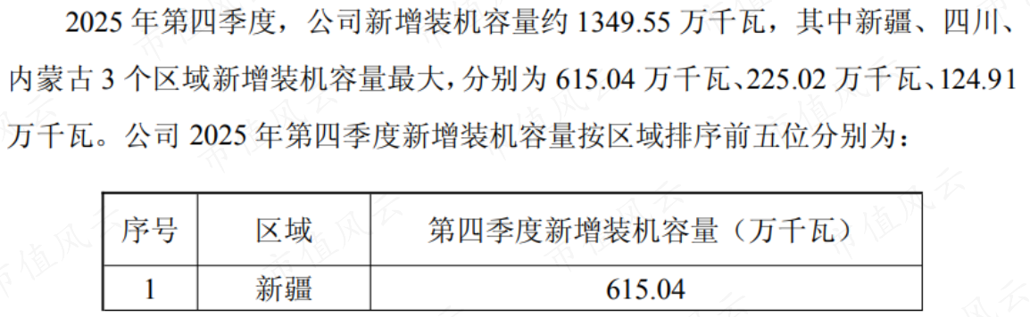 值得一提的是,公司布局高度集中在西北、華北等資源富集區(qū),尤其是新疆的“沙戈荒”大基地。2025年新增的1349.55萬千瓦裝機(jī)中,近半數(shù)位于新疆地區(qū)。這種布局降低了開發(fā)成本,但也帶來了消納壓力。