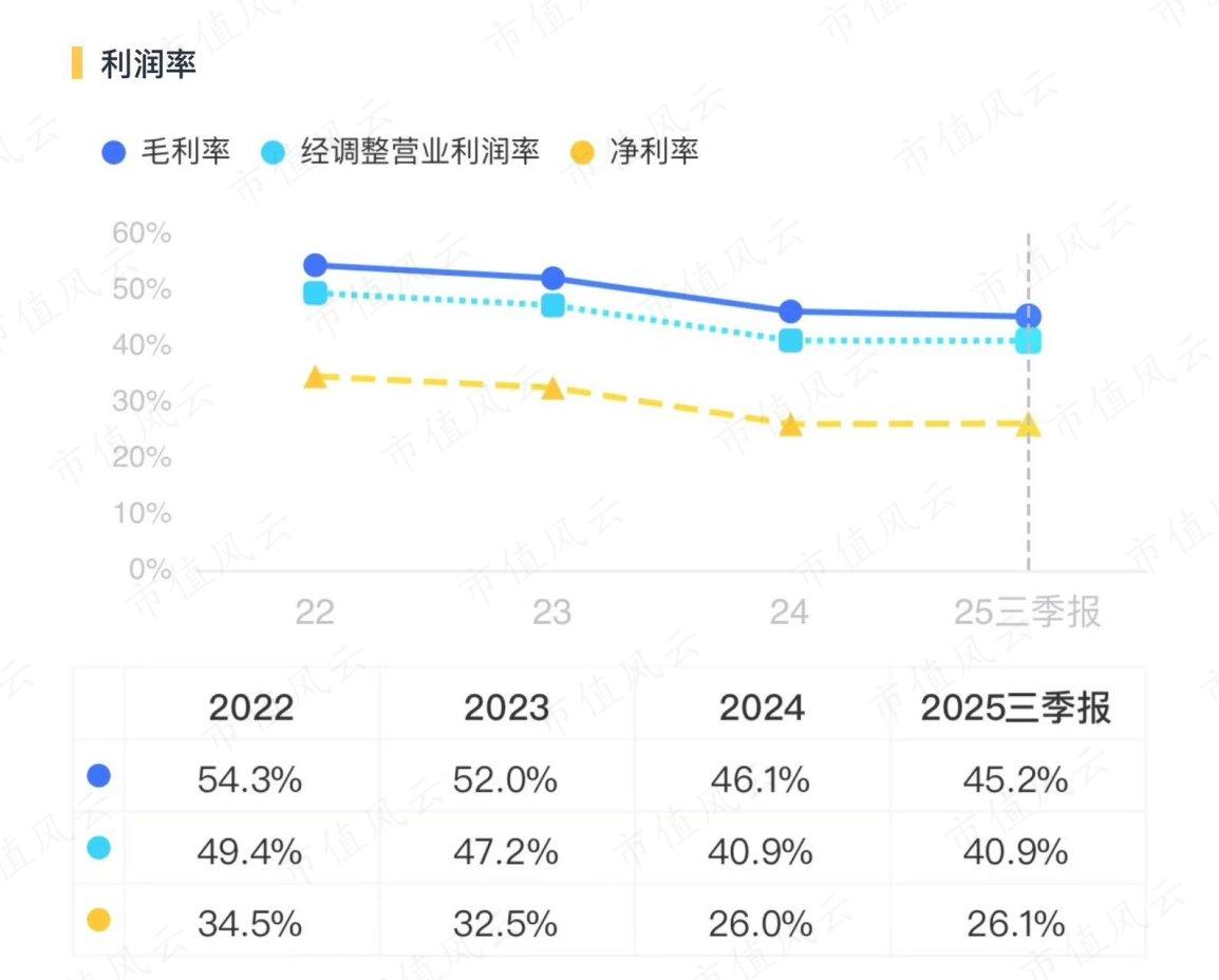 2025年前三季度,公司營收295億元,同比增長18%;歸母凈利潤77億元,同比微增0.2%;扣非凈利潤76.7億元,同比微增1.8%。對照2024年?duì)I收340億元來看,2025年公司營收規(guī)模大概率繼續(xù)破300億元。