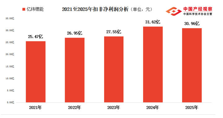 財(cái)報(bào)數(shù)據(jù)顯示,2025年億緯鋰能(300014)實(shí)現(xiàn)扣非凈利潤(rùn)31.62億元,較2024年的30.96億元小幅下滑,盡管跌幅有限,但已然釋放出公司主營(yíng)業(yè)務(wù)盈利能力轉(zhuǎn)弱的信號(hào),陷入“增收不增利”的經(jīng)營(yíng)困境,2025年?duì)I收增長(zhǎng)了26.44%,達(dá)到614.7億元。
